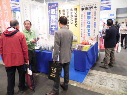 日本最大級の異業種交流展示会「メッセナゴヤ2013」が11月13日〜16日名古屋市港区のポートメッセなごやで開催されました。今回は「環境・安全・モノづくり」をテーマに過去最多の832社・団体が出展。弊社は麦飯石利用農法の展示、麦飯活土、トマトジュース、石けん、各種麦飯石展示と販売も行いました。