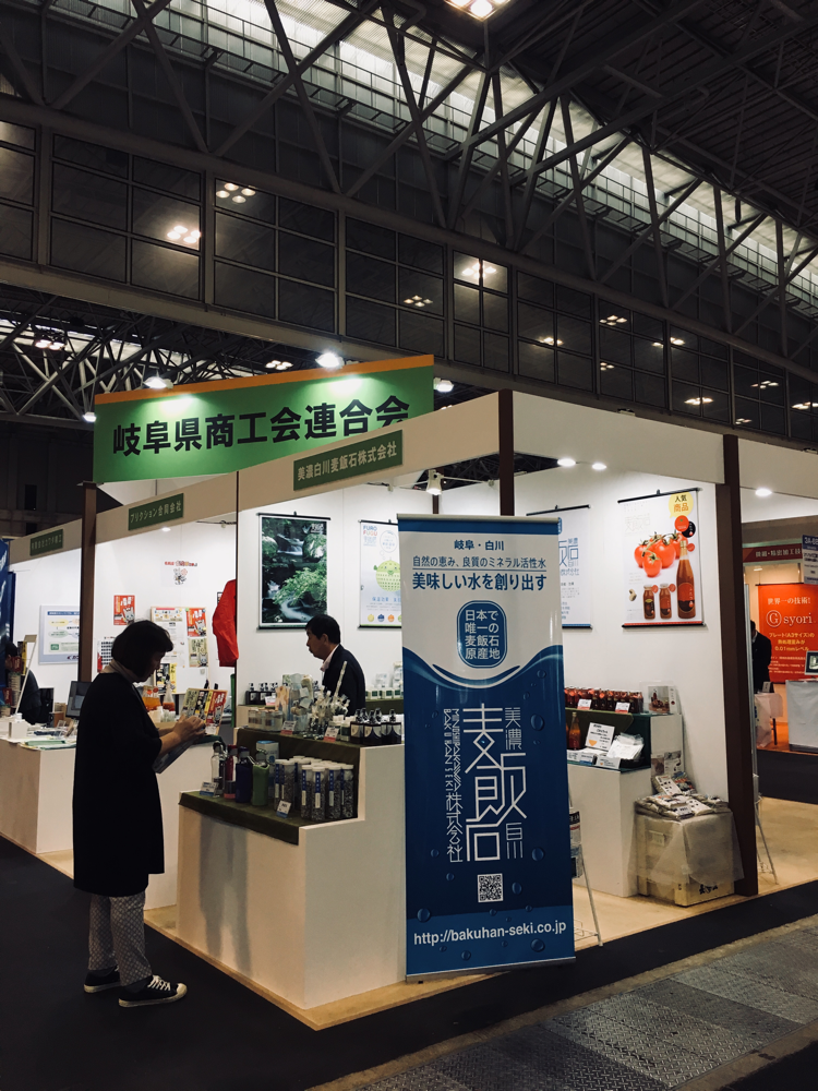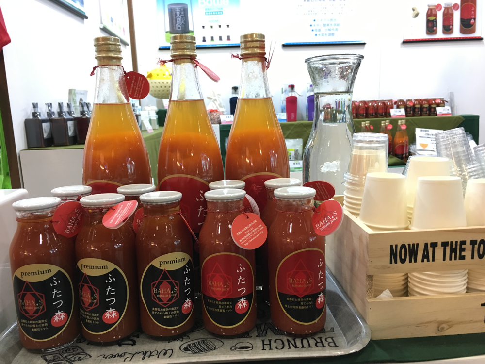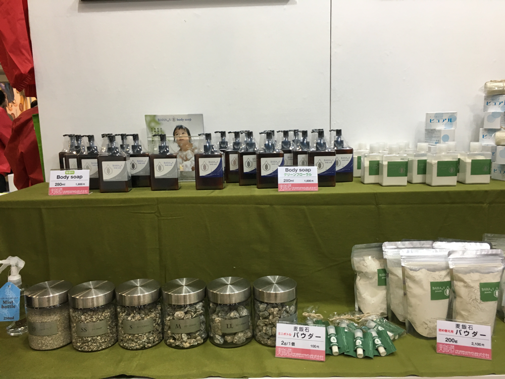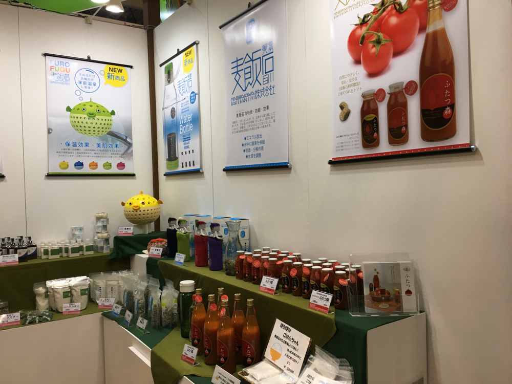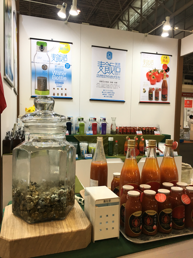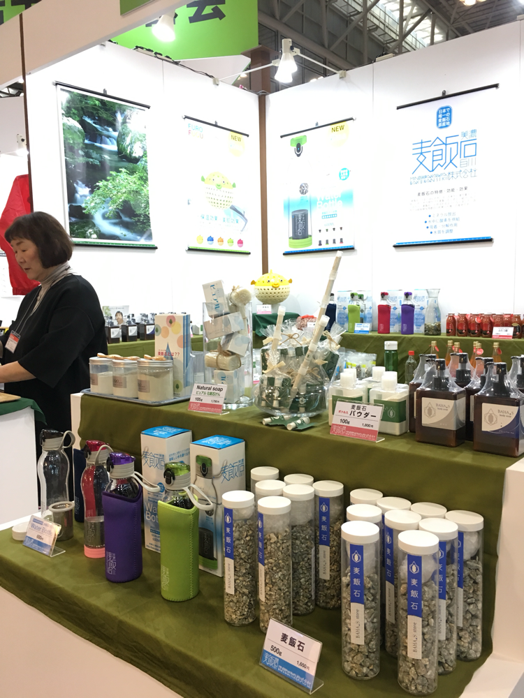 弊社では、新たに、『BAHA.S』バハスのブランドを立ち上げ、自社製品の容器やシール、ポスター等をリニュウアルし商品の展示を行いました。今回は女性スタッフのみで丁寧に商品の説明やPRを行いました。 商品のパッケージが変わったことで訪れたお客様から 高級感が有る。商品を使ってみたい。麦飯石に興味を持った。 トマトジュースが美味しい。等いろいろなご意見をいただき、ブースへの来場者も例年になくたくさんの人で賑わいました。