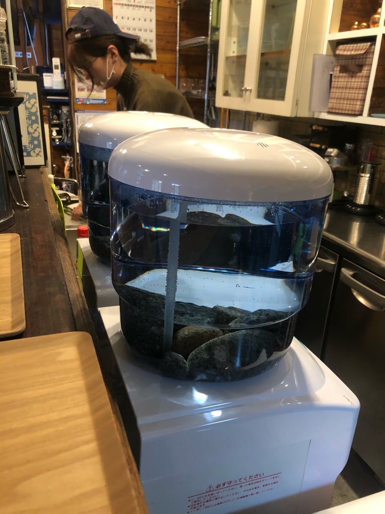 麦飯石の入った水槽を展示中