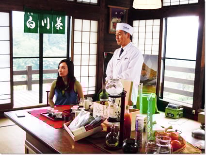 デビット社長は白川茶と美濃白麦飯石のクオリティを高く評価して