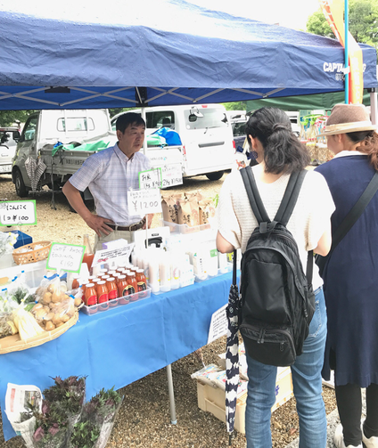 気温も湿気も高い“ザ・名古屋!”な気候の中の開催となりましたが、トマトジュースにも使用しているフルティカトマトや、美濃白川産トウモロコシなど旬の野菜はあっという間に売り切れてしまいました!