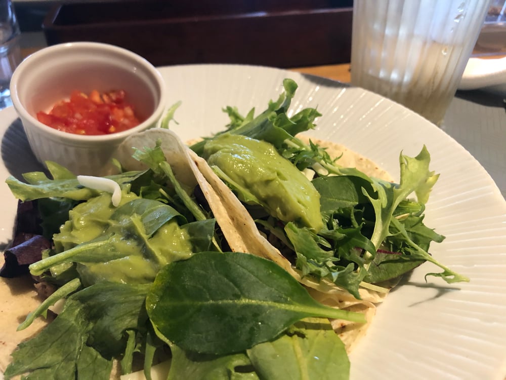 目的のタコスはとうもろこし粉(小麦粉と選べました)のトルティーヤにライムが効いたワカモレ(アボガドディップ)と本格的なお味‼︎